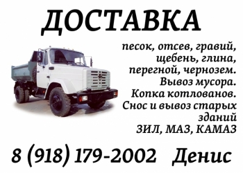 Доставка сыпучих грузов. Вывоз мусора.Копка котлованов. Снос и вывоз старых зданий.ЗИЛ, МАЗ,КАМАЗ