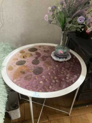 Стол журнальный с железным каркасом залитый эпоксидной смолой