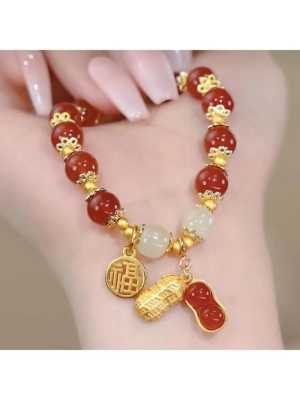 Новый Цвет-золотистый; красный; светлый опаловый Браслет на запястье с арахисом-1шт, +подарок Состав бижутерии...