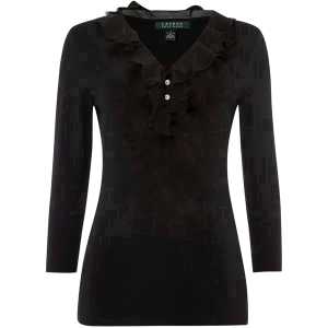 + подарок к покупке Чёрная кофта / джемпер с воланами, полностью из натуральной ткани в рубчик, бренд LAUREN RALPH...