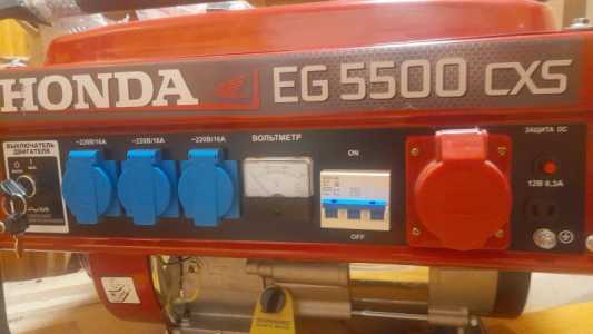 Бензиновый генератор Хонда, мощность 5,5квт,напряжение 380в (3 фазы по 220в)розетка на 12в постоянного тока.
