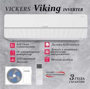 Сплит-система инверторного типа VICKERS VIKING Inverter это уникальное сочетание функционала и стиля (компрессор GMCC).