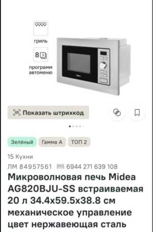 Продам новую свч, накосячили с размерами кухни не подходит. Ценник ниже чем на любых маркетплейсах мюи магазинах.