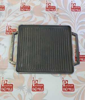 Противень-гриль из литого чугуна с габаритами 490 (400)х360 мм для приготовления пищи на углях имеет прямоугольную форму...