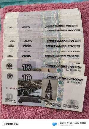 Продам банкноты 10 рублей образца 1997 года обсолютно новые с запахом краски и хрустящие. Банкноты из банка.