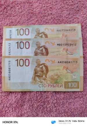 Продам новые банкноты России, 100 рублёвые купюры .Новые и нового образца за три купюры 350 т.р.
