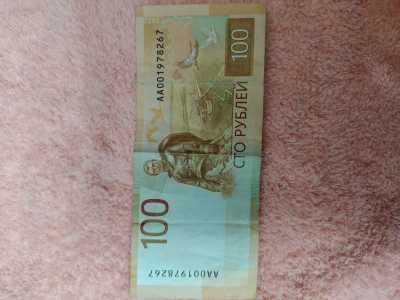 Продам купюру 100 рублей с красивым номером с днем рождения 1978 26 7 серия купюры АА001978267 .