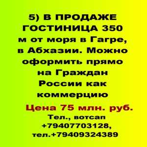 5) ПРОДАЕТСЯ ГОСТИНИЦА в Гагре, в Абхазии. Можно оформить прямо на Граждан России как коммерческую недвижимость.