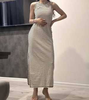 Летнее платье в полоску, размер 42 (S). Изготовлено из натурального материала для комфорта и легкости.
