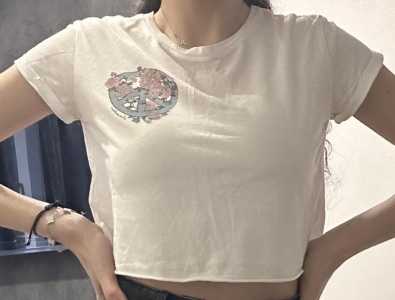 Белый топ в хорошем состоянии, размер 42 (S). Изготовлен из натурального материала с оригинальным принтом.