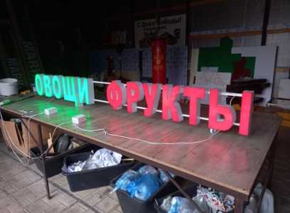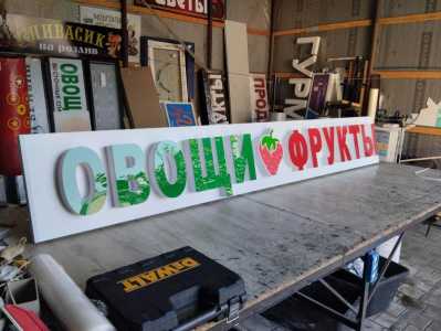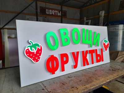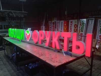 Световая вывеска: овощи фрукты 4000/400 мм, клубника световая 446 мм, каркас профильная труба 15x15 мм, буквы акриловые...