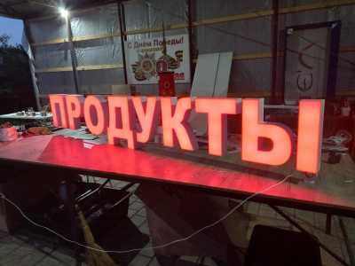 1).Световые буквы: лицо акриловое, бочина ПВХ-3 мм, подсветка светодиодная кластеры ip67 Буква 300мм-2400₽/шт 2).