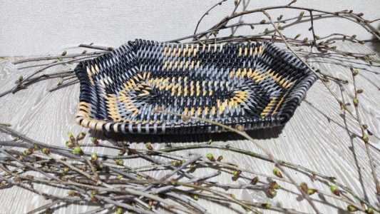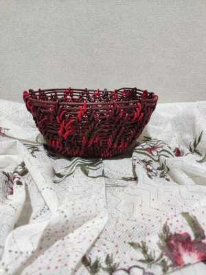 Сухарница из бумажной лозы. Выполнена в технике корневого плетения. Высота 6см, диаметр 21/33см.