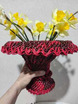 Ваза из бумажной лозы. Высота 22см, диаметр ножки низ 13см, диаметр верха 32см.