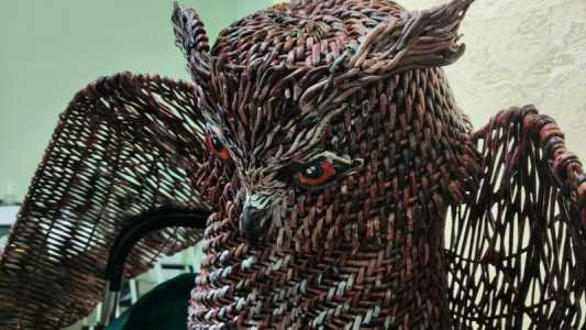 🦉Крылья - собран каркас из трубочек (внутри проволока), Оплетался ситцевым плетением.