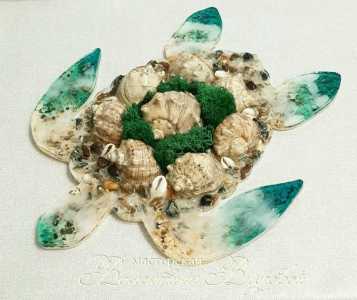 Остров долголетия выполнен с любовью из ракушек, эпоксидной смолы, мха, песка и камушков с побережья чёрного моря.