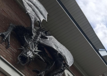 Скульптура горгульи изготовлена из композитных материалов. Высота - 85см.Ширина - 90см.Электропровод проходит внутри тела.