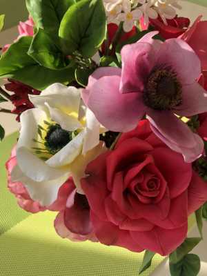 Букет ручной работы из флористической полимерной глины холодный фарфор дополнит интерьер уютом.