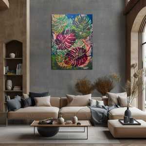 Экспрессивная, насыщенная картина с мотивом тропических листьев оживит любой интерьер и станет ярким акцентом в пространстве.