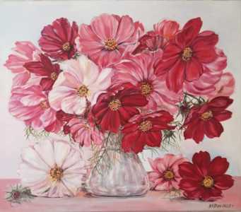 Букет разноцветной космеи 70х60 Космея - "Красотка" - символ скромности, чистоты, привязанности.