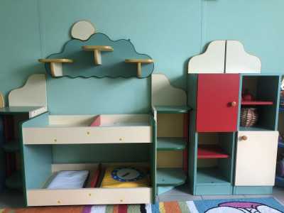 Продаётся набор детской мебели:шкаф, кровать, комод, горка, шкафчики для игрушек и книг. Цена 20 000 р.