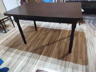 Продаётся стильный раздвижной деревянный стол с набором из 3 мягких стульев.
