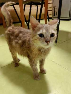 Кошка. Возрост не известен, но примерно 1 годик. Пол девочка. Проблемы со здоровьем. Половой оргон чем-то заражен. Блохи.