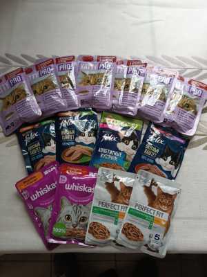 Сочный корм для кошек Феликс, Вискас, Перфект фит, Кэтти Про, всего 15 шт , вес 75 г, свежий корм. За все 340 руб.