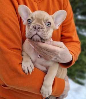 Французская конфетка,окрас голубопалевый.д.р. 11.03.25.Цветная генетика- несёт голубой и лиловый ген.